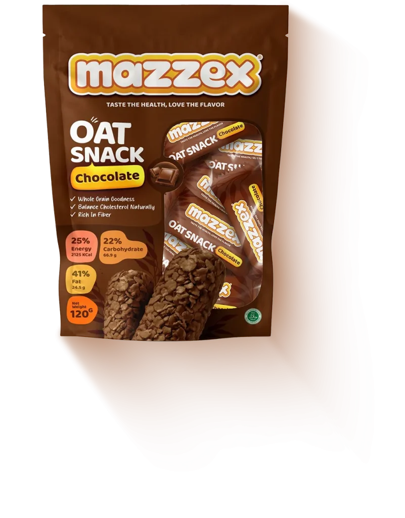 Fuel your day the smarter way with Mazzex Oat Snack Chocolate Flavor, a deliciously wholesome treat made with fiber-rich oats and natural whole grains.